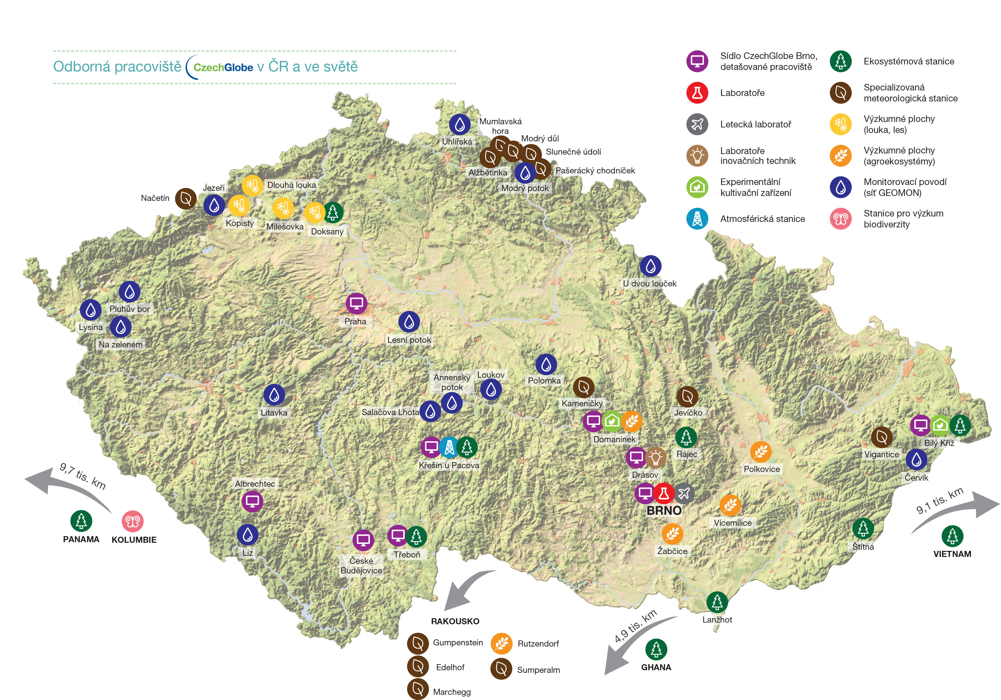 Modernizovaná síť ekosystémových stanic – Bílý Kříž, Domanínek, Křešín u Pacova, Lanžhot, Rájec, Štítná, Třeboň – se zaměřuje na sledování toků uhlíku v základních typech ekosystémů ČR. Data jsou následně kvantifikována a vyhodnocena. Stanice jsou vybaveny dle protokolu ICOS, přístroji pro měření toků CO2, N2O a CH4, vody, energie mezi terestrickými ekosystémy a atmosférou, klimatických charakteristik, spektrální reflektance a transpiračního toku dřevin.